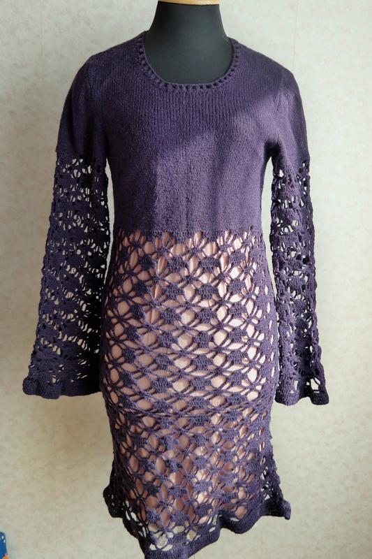 Платье вязанное на заказ из шерстяных ниток. Крючок и машинная вязка. Длина 102 см Рукав 61 см Грудь 84 -92