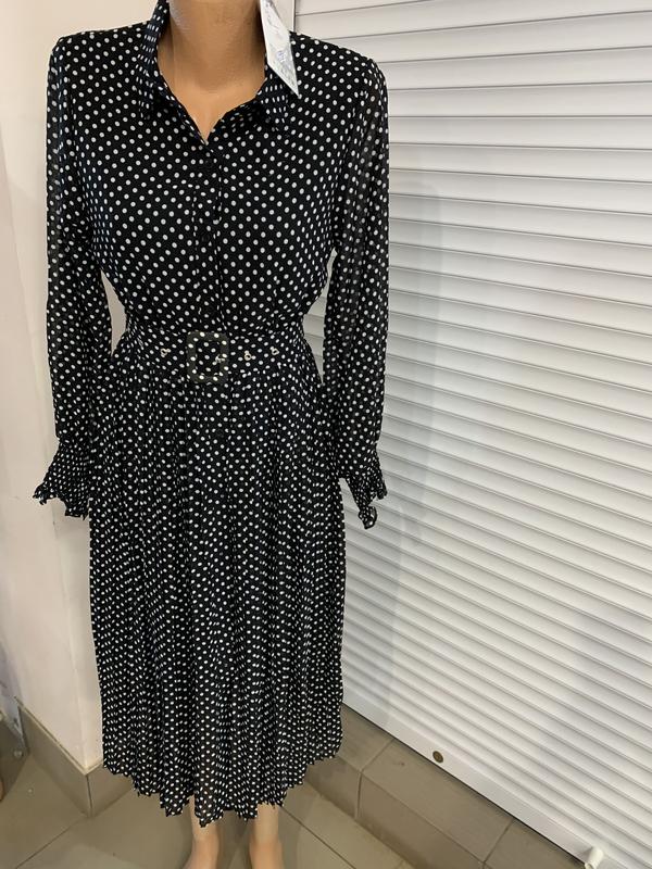 Шифоновое нарядное платье длинной до колена.Юбка гофрированная не мнется .Рукав длинный
