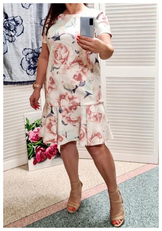 Платье в цветочный принт Marks&Spencer р. 14 ( р. L) Плотная эластичная ткань, ровный крой, хорошо тянется. В идеальном состоянии! Замеры: - длина от плеча 90 см - рукав от горловины 24 см (плечевого шва нет) - ПОГ 50 см (тянется до 53 см) - ПОТ 48 см (тянется до 52 см) - ПОБ 51 см (тянется до 55 см)