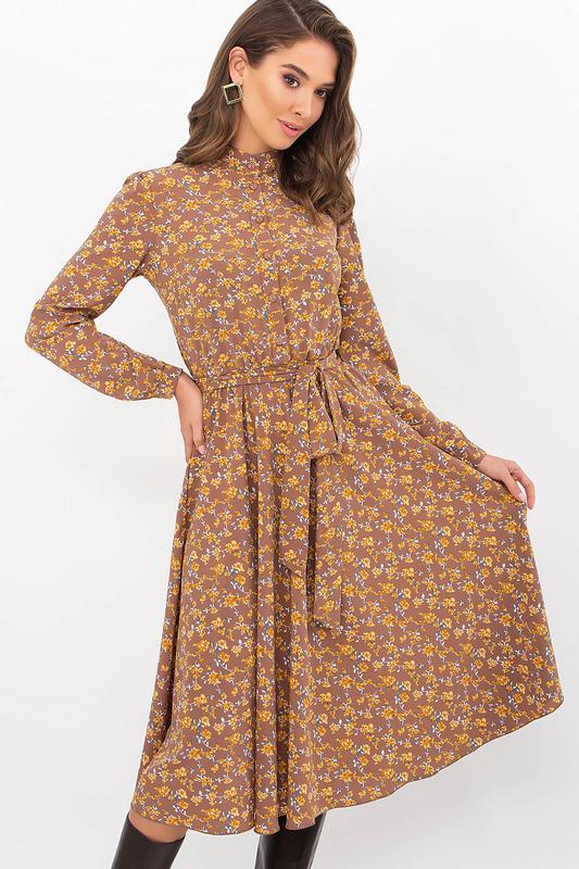 Софтовое платье в цветочек просто создано для романтических свиданий и долгих прогулок в парке среди осенней листвы. Мягкая поверхность материала приятно касается кожи, юбка движется при ходьбе легкими волнами.