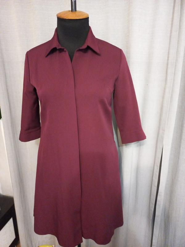 Шикарное добротное платье изумительного цвета марсала с планкой, под которой скрыты пуговицы. Платье А-силуэта из костюмной плотной ткани "люкс" . Размер 44-46. ПОГ 47 см, ПОТ 47 см, ПОБ 52. Длина 98 см, плечи 41 см. Производитель Украина.