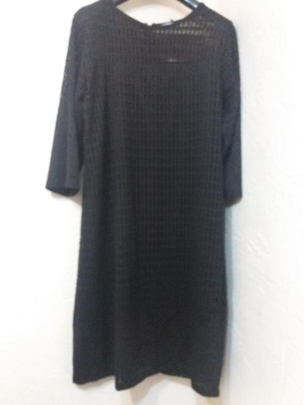 плаття чорне ажурне. на підкладці з рукавом 3/4 довжина плаття - 102 напівобхват грудей - 48 напівобхват талії - 48 напівобхват бедер - 53 довжина рукава - 44
