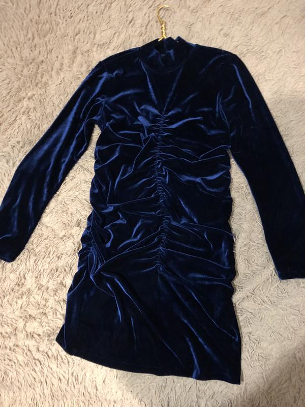 Дуже красиве велюрове плаття насичено синього кольору. Розмір 50. Тканина добре тягнеться. Одягала 1 раз.
