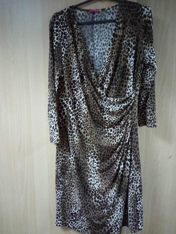Платье с леопардовым принтом,стрейч.ОГ 100,ОБ 104,рукав 51,талия 88,длина 98.