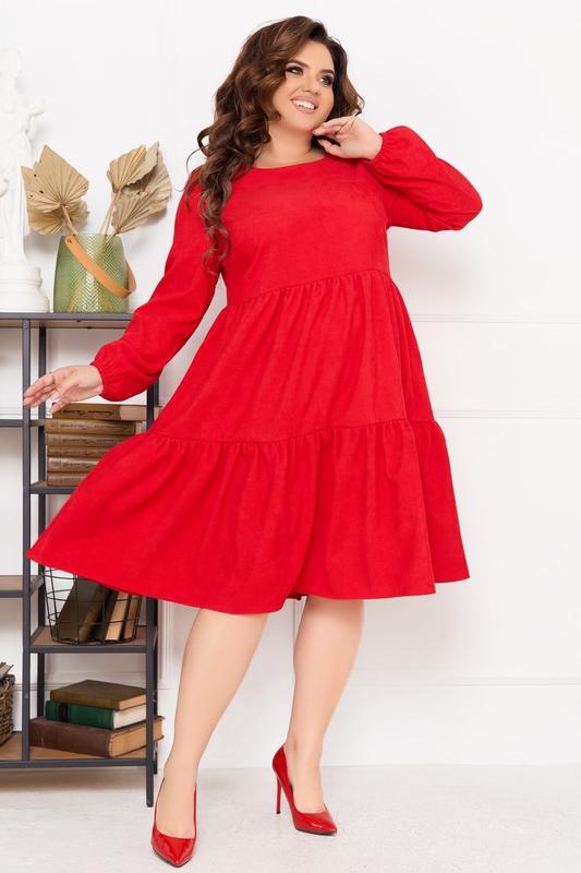 Платье Код 3515 Цена 735 грн. Ткань: микровельвет (не мнется). Цвета: ✅ фрез ✅ серый ✅ пудра ✅ красный ✅ зелёный ✅ черный ✅ марсала Размеры: 48-50, 52-54, 56-58, 60-62, 64-66. Длина платья: 104, 106, 108, 110, 112 см. Длина лифа: 39, 40, 41, 42, 43 см. Длина рукава: 62, 62, 62, 63, 63 см. Обхват рукава: 37, 39, 41, 43, 45 см. Замеры готового изделия: 48-50 ОГ 102 ОТ 104 ОБ 160 52-54 ОГ 110 ОТ 112 ОБ 170 56-58 ОГ 118 ОТ 120 ОБ 180 60-62 ОГ 126 ОТ 128 ОБ 190 64-66 ОГ 134 ОТ 136 ОБ 200 Стильное повседневное платье из микровельвета (ткань растяжимости не имеет). Вырез горловины круглый, рукав длинный, низ рукава собран на резинку. Юбка платья состоит из двух ярусов. Застёжек, карманов нет