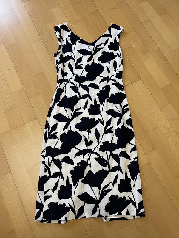 Сукня з щільної віскози на підкладці ацетат. Бренд L. K. Bennett. Розмір 44. Круглий виріз попереду, V - подібний виріз ззаду. Блискавка ззаду по серединного шва. Розріз ззаду. ПОГ 44 см, ПОТ 35 см, ПОБІДИ 47 см, довжина 105 см. Ідеальний стан.