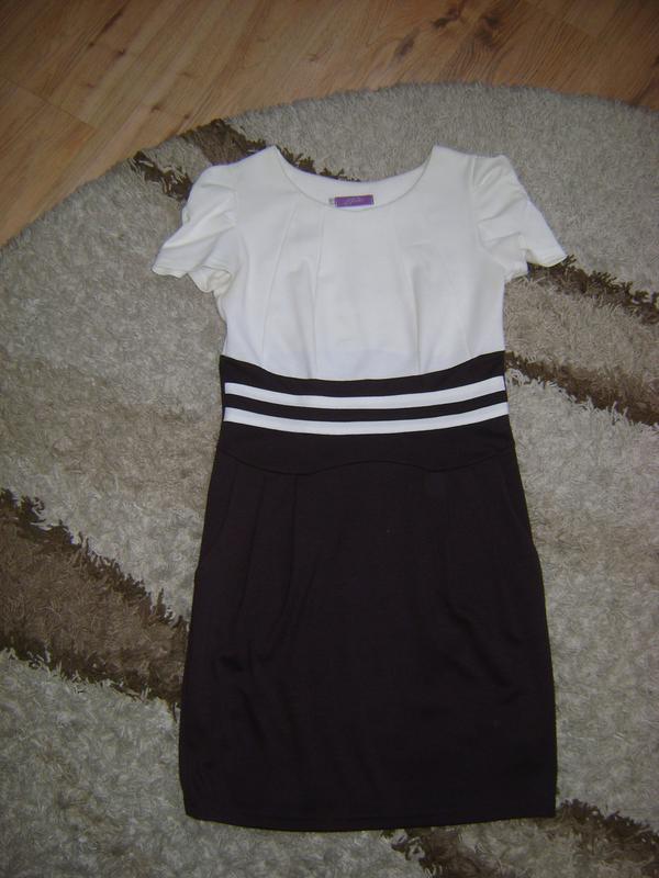 Плаття коричневого з молочним кольору. Французький трикотаж. Довжина-92 см;ПОГ-43 см.