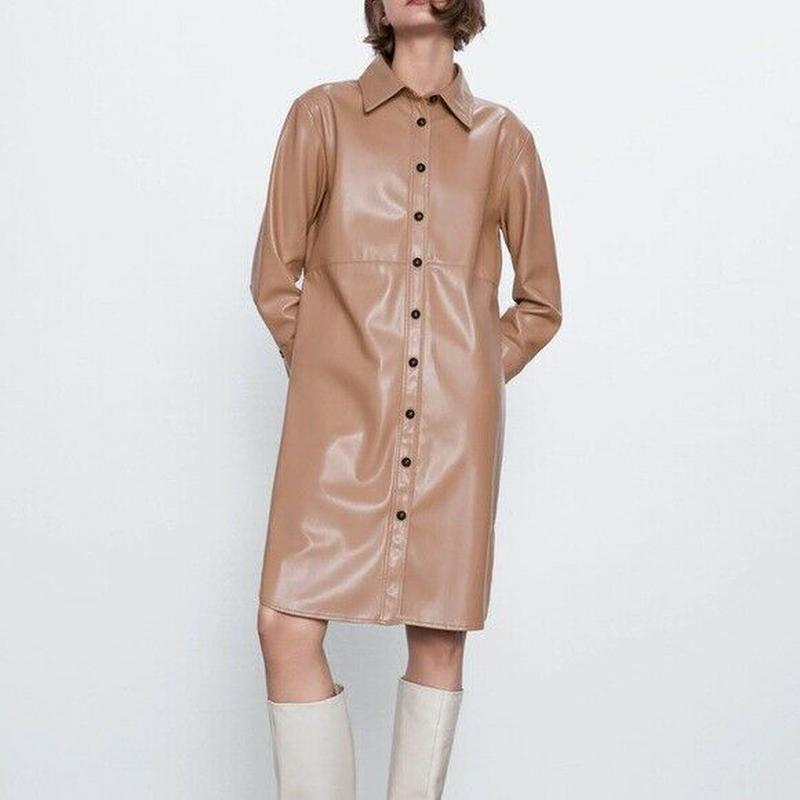 Платье рубашка ZARA из эко кожи испания очень мягкая новое с бирками на бирки указон М размер на Л размер подойдет так как большемерит пог 53см пот51см поб 54 см плечи 45 см рукав 57 см длина 98см