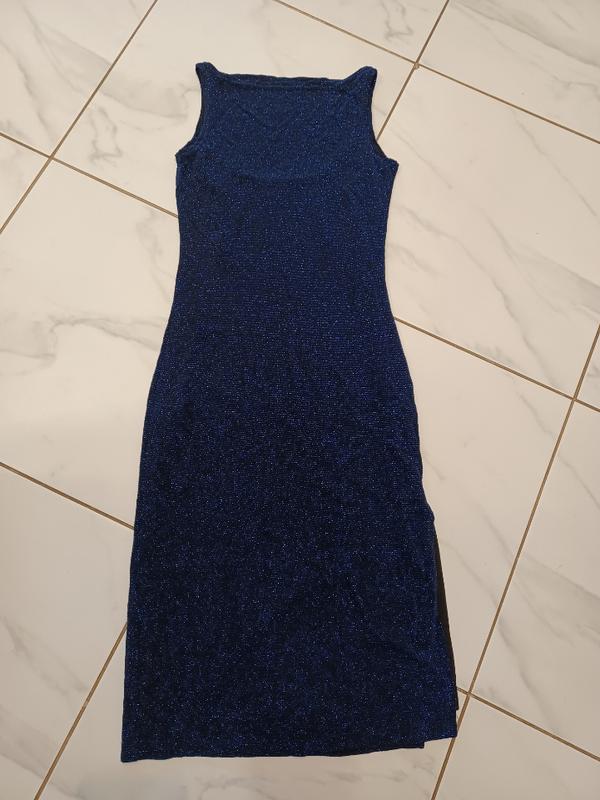 Платье красивого синего цвета из люрекса с разрезом,есть подкладка-платье.