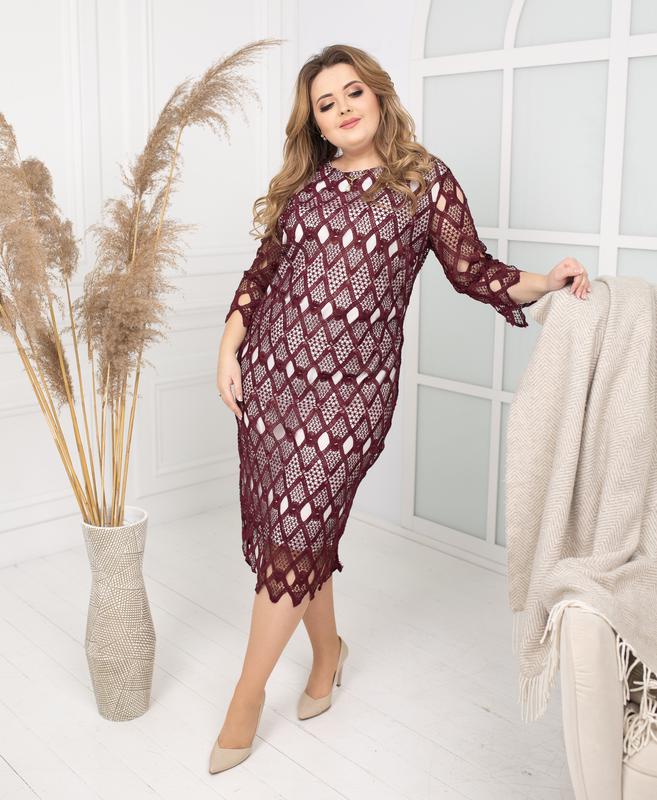 Оригинальное и стильное бордовое платье, подчеркнет вашу индивидуальность и женственность, подойдет к любому торжеству. Приталенный фасон правильно расставляет акценты на фигуре. В красивом бордовом цвете трикотаж в сочетании с гипюром ложится по фигуре безупречно. Вырез горловины круглой формы, длина изделия ниже колена. Ткань: Трикотаж с гипюром Размеры: 54 56 58 60 ✅ Оплата при получении ✅ Обмен гарантируем ✅ Только реальные фото сделаны нами