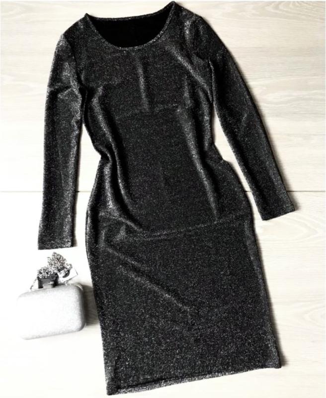 Нова чудова люрексова сукня. Размер S. Длина 99 см. ПОГ 39 см (тянется). ПОС 57 см. Ткань очень красивая с семеребристым люрексом.