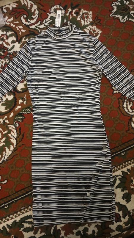 Платье, новое с биркой,очень приятный материал к телу,размер С.Воротничок со стоечкой.Покупалось дорого,цена на бирке указана.