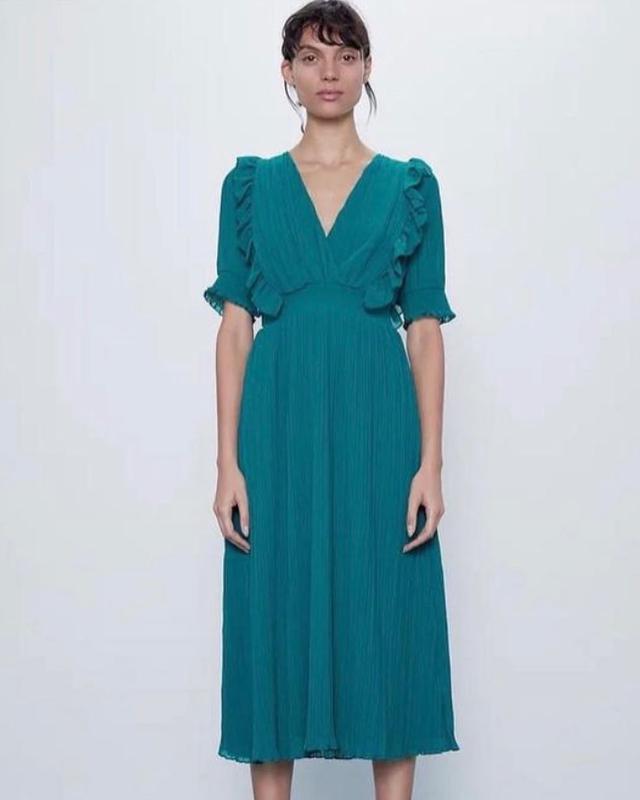 Зелена міді сукня Zara ▪️Розмір L Заміри: Довжина 126, ,ПОГ 49см, ПОТ 30резинка ☑️Склад тканини : поліестр 100% 🔥Ціна 750грн
