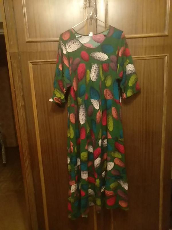 Платье ярусное, очень красиво ложится по фигуре. Насыщенные благородные цвета. Замечательно смотрится, полходит к разным случаям. Пог 66 Пот 64 Низ поо 133 Длина 130 Плечи 40 Рукав 3/4