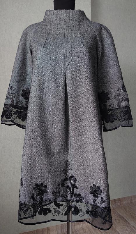 Рукав реглан, непревзойденный крой, фасон трапецевидный. Скрывает все недостатки, в ней вы будете выглядеть еще стройнее. Универсальная модель в театр, на вечеринку, на работу в офис. Рукав 3/4. Замеры: Довжина 93 см. Плечі 42 см. По грудях 100 см. Стегна 62 см.