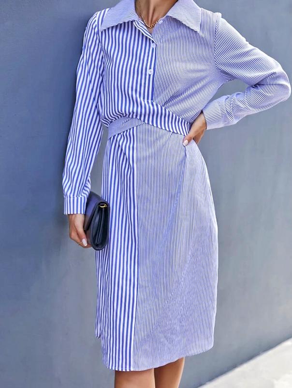 Платье-рубашка в полоску , стильное платье миди Цвет : сине-белая полоска Состав : полиэстер Размер : S Замеры : длина 108 см, плечи 39 см, бюст 98 см, в талии 96 см, рукав 60 см Привезено из США 🇺🇸 Платье упаковано в фирменный пакет