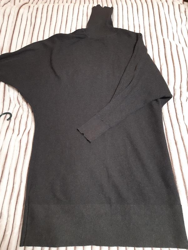 Гарне нове сіре плаття з рукавом летюча миша вязане, дуже якісний трикотаж, при 165 росту по коліна з високим воротом, гарно носити під пояс