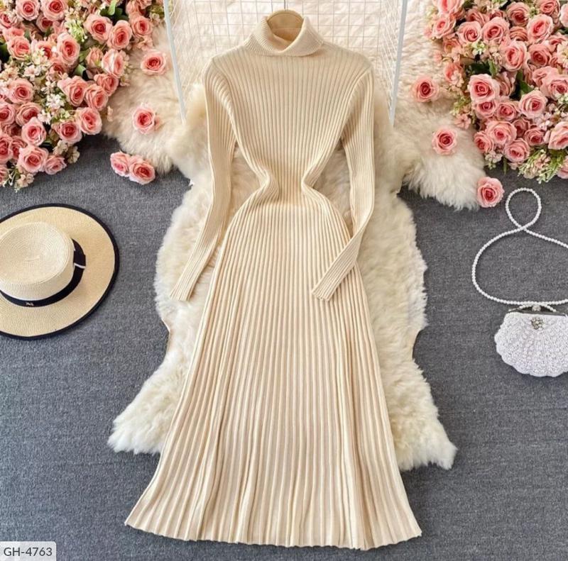 Платье GH-4756 Размеры: 42-46 Цвет черный. серый. коричневый. малиновый. пудра. бирюза. т. беж. белый.. Такие женственные платья с высоким горлом (фабричный китай Ткань плотный трикотаж рубчик, юбка плиссировка Длина 114 см рукав 57 см 8 цветов ----------------------------------------