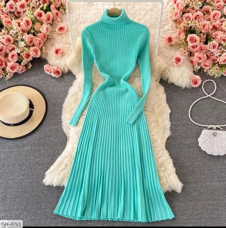Платье GH-4756 Размеры: 42-46 Цвет черный. серый. коричневый. малиновый. пудра. бирюза. т. беж. белый.. Такие женственные платья с высоким горлом (фабричный китай Ткань плотный трикотаж рубчик, юбка плиссировка Длина 114 см рукав 57 см 8 цветов ----------------------------------------