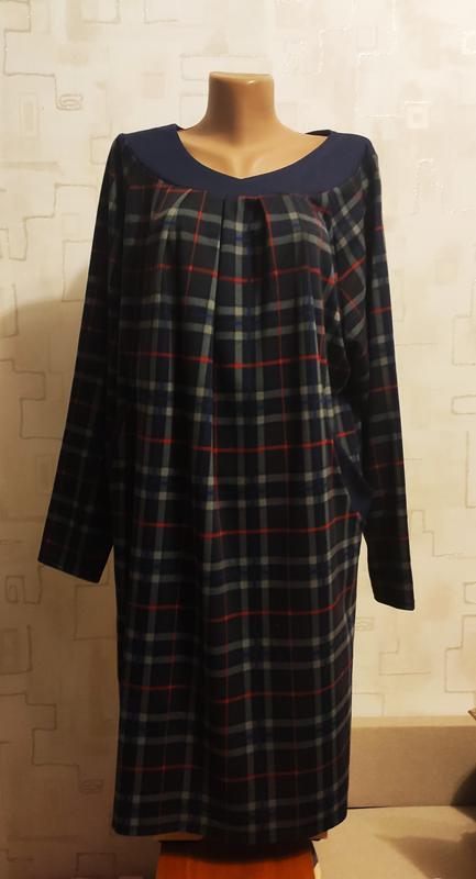 Платье размер 56, принт квадратики, с карманами по бокам, замеры: пог пот поб 62-65 прямой покрой, общая длина от плеча 101, рукав 65