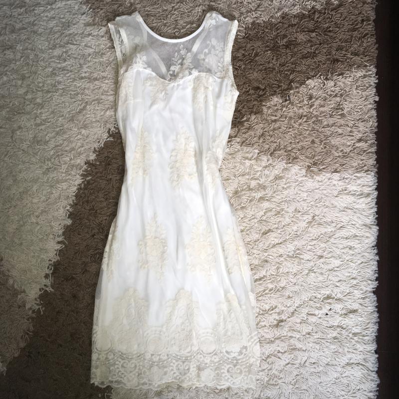 Шикарное нарядное платье в бельевом стиле, кружево на сетке цвета Айвори, подкладка, платье футляр по фигуре, размер указан 10(38) М, но лучше сядет на Л. Без дефектов!