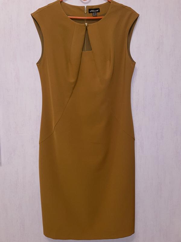 В идеальном состоянии, носилось мало. Смотрится шикарно, цвет насыщенный горчичный. Есть жакет, подобран в комплект.