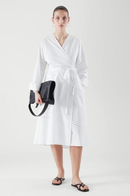 ПЛАТАТИ З ЗАПАХОМ: герой гардероба цього сезону. Сукня міді з бавовни із заходом спереду, трикутним вирізом і регульованою зав'язкою збоку. — Легкий А-силует — V-подібний виріз — Довгі рукави з манжетами — Дві кишені в бічних швах 100% бавовна / Можна прати в машині. Довжина спинки розміру S: 120,5 см/зріст моделі: 178 см, розмір S В наявності ХС,С