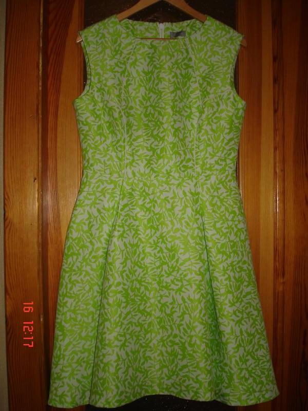 В новом состоянии, только примерка, (немного маломерит для меня, смотрите замеры), фирменное нарядное платье, на подкладке из полиестерового полотна, с небольшим атласным отливом, сзади на молнии-застёжке. Платье хорошо держит форму, отлично ложиться по фигурке, очень женственный фасон. Цвет зелёный- сочный, молодой травы, смотрится свежо и нарядно. Уголки юбки ,чуть длиннее центра. Указан размер 14, но смотрите замеры.