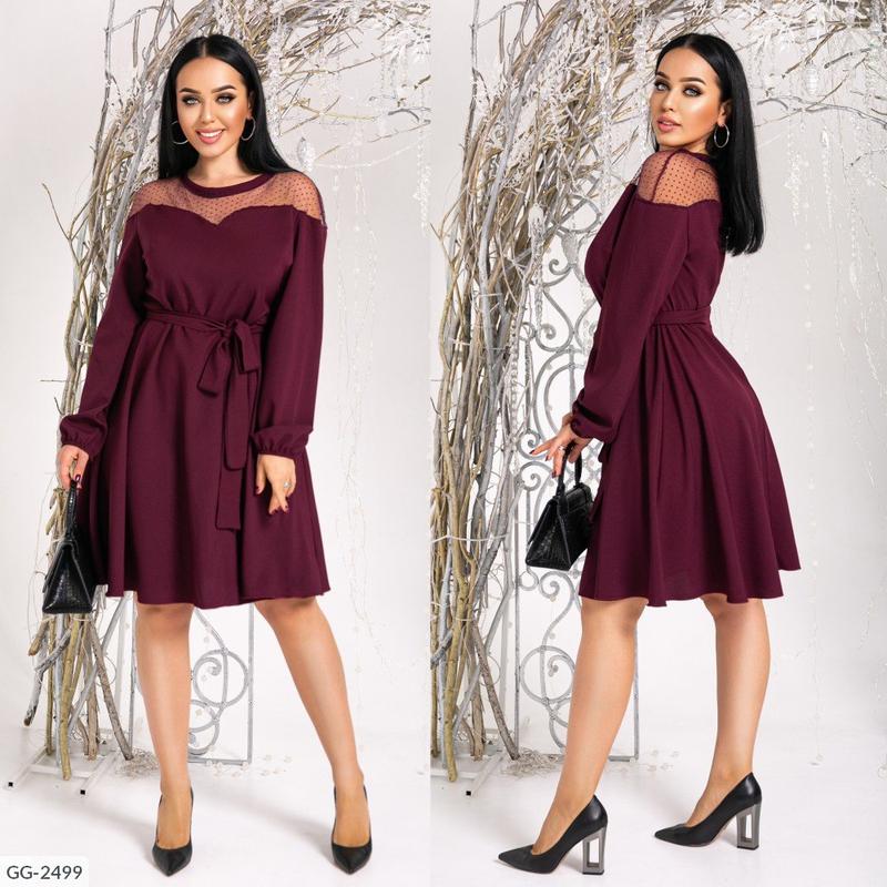 Коктейльне плаття GG-2503 Розміри: 46-48, 50-52, 54-56, 58-60 Тканина: сітка горох + євро креп софт хороша розтяжність Довжина сукні: 105 см Довжина рукава: 77 див. ( від горловини) #плаття дуже красиве плаття 👗