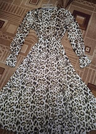 Супер красивое платье в Лео принт. По ножке идет вырез,талия на резинке, размер 36