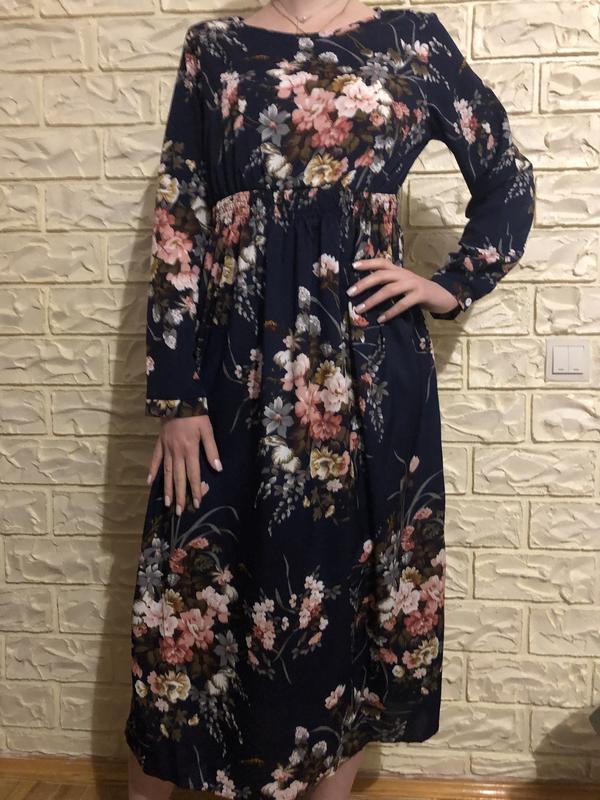 Сукня в ідеальному стані, красиві квіти, тканина середньої щільності, м'яка, легка. Довжина 122. Груди 102. Талія - пояс66 - тягнеться до 100. Стегна 140. Від плеча до плеча 40. Рукав 63. Спина 38.
