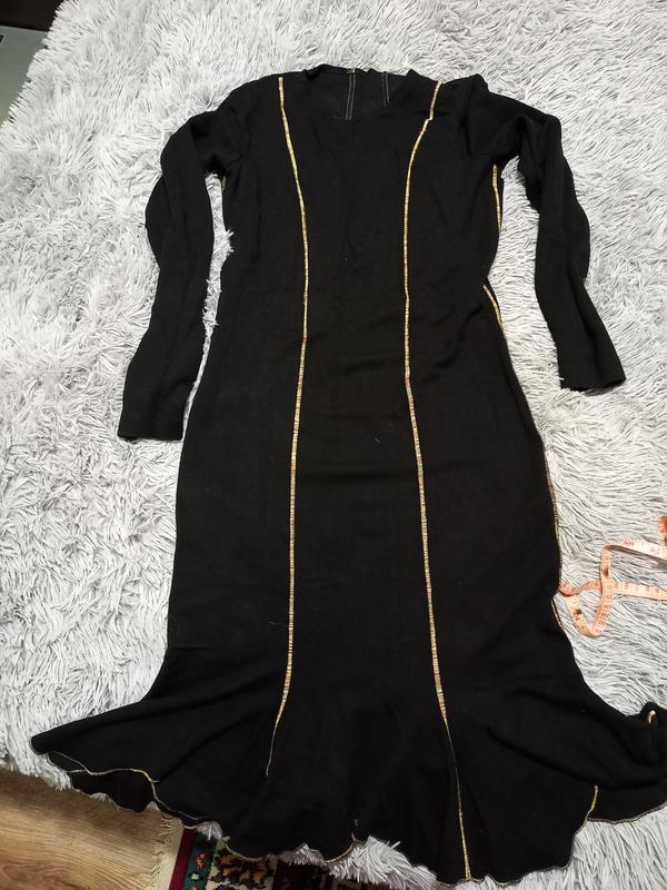 красивое платье которое выгодно подчеркнёт Вашу фигуру, сделанное из плотного трикотажа, тянеться, но не сильно (где-то 2-3 см). по низу наподобие годе. состояние идеальное. катышек практически нет