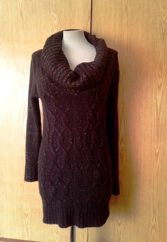 Вязка средней плотности. Цвет -горький шоколад. Размер не указан , но подойдет на S-L. Замеры : ПОГ - 43-54см, ПОТ - 38-49см, ПОБ - 39-52см, Длина рукава - 57см, Ширина плеча от ворота до плечика- 8см, Длина от плеча до низа - 78см, Высота хомута - 24,5см. Бренд - impulse. London. Состав: 92%акрил, 7%люрекс Доставка: Отправка только после полной оплаты. Пересылка Meest бесплатно, Justin и Укр почтой по акции 15грн, Новой. При покупке двух и более вещей - СКИДКА.