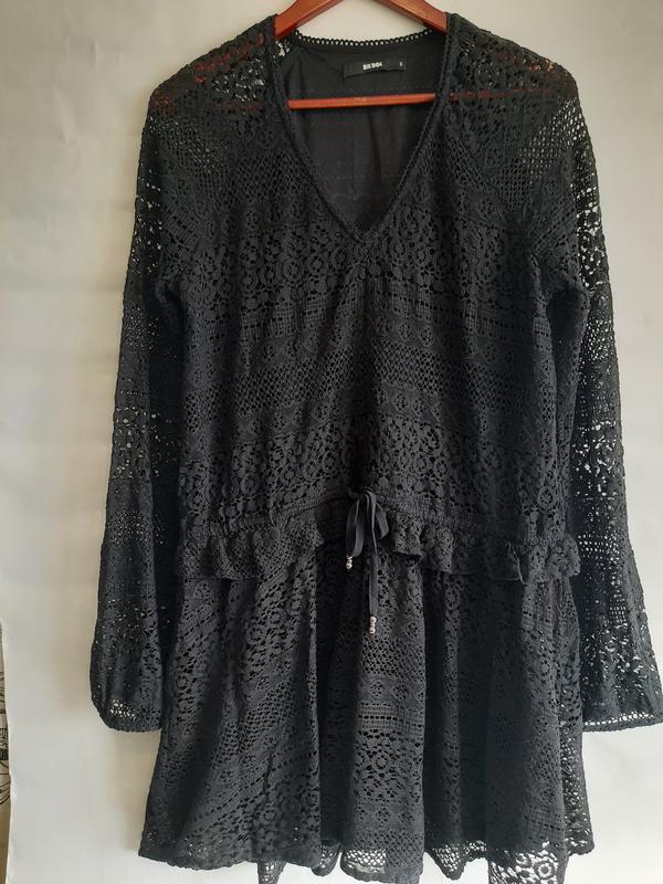 нарядное платье на подкладке, ткань тянется.цвет чёрный.пояс на кулиске.пог 53 см,пот 54 см,поб 64 см.от талии свободно.длина 90 см,рукав от шеи 78 см.