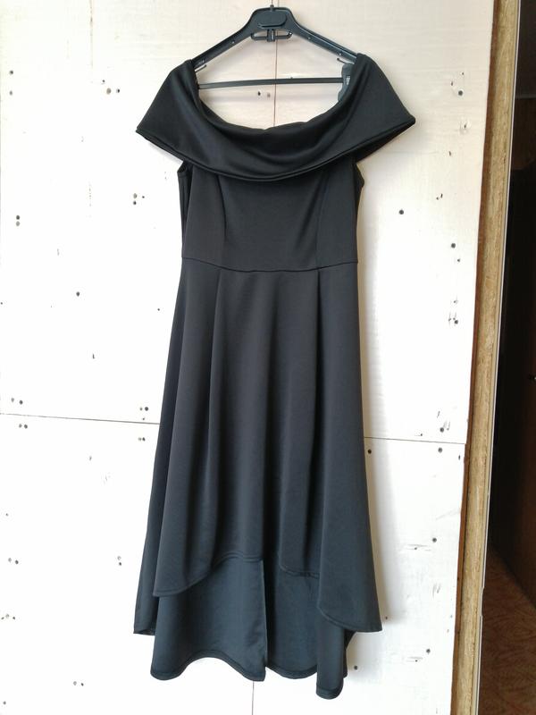 Шикарное платье миди с удлинённой спинкой и оголёнными плечами брак , на подоле есть пятны...