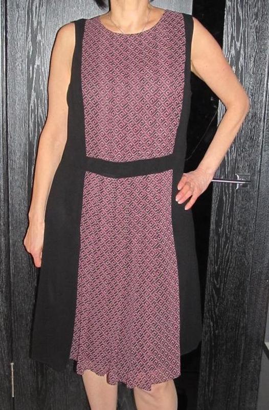 Волшебное миди платье M&S р. 18 Классика стиля, контрастное сочетание цветов, плиссированная вставка по передней поверхности. Новый с бирками. Замеры: длина 105см, пог-62cm, пот -49см, побеги-66см. Цена 400 грн.
