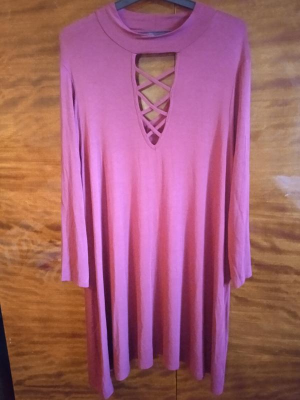 Трикотажное платье.Пог 58-60 см.Поб -70 см.Длина-100 см.Бока-105 см.Состояние нового