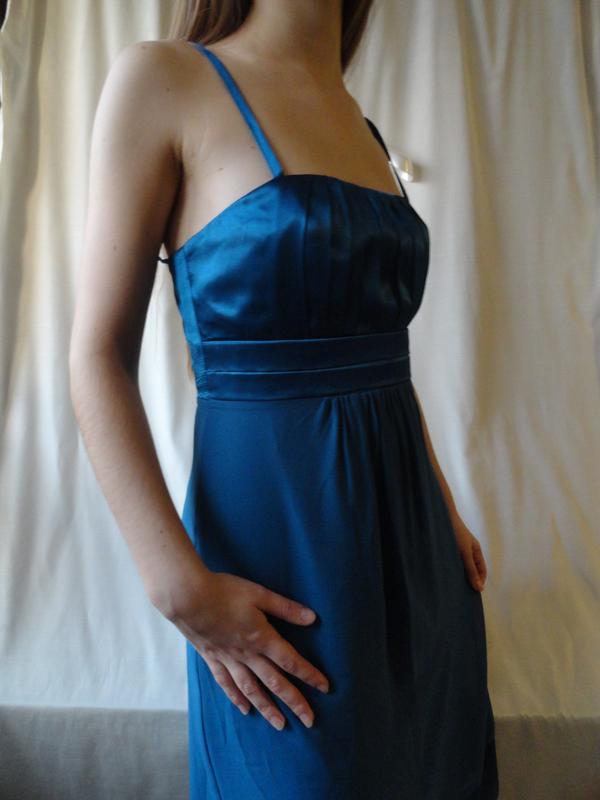 Вечерне платьице на тоненьких бретелях ( длина регулируется) Замеры : Пог - 40 см, под грудью - 32 см .Длина от подмышки - 82 см. на фото цвет получается голубой ,а на самом деле оно темная бирюза с голубым оттенком.