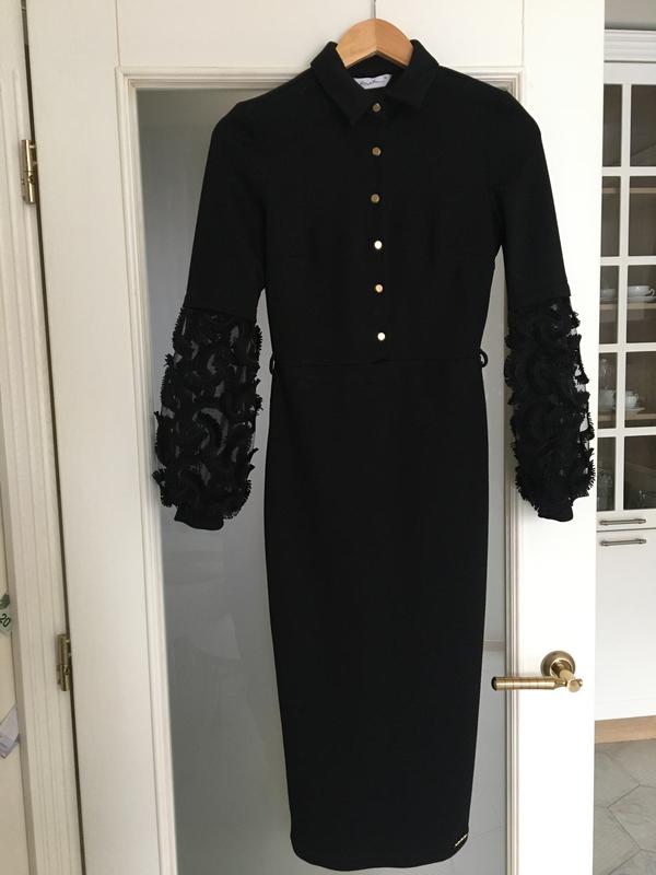 Сукня на всі випадки життя, елегантна й практична, не мнеться,приємна на дотик тканина, трохи тягнеться, класична довжина трохи нижче коліна. Вдягнена один раз, продаю через надмірне захоплення тістечками))) Плечі 36, талія 32, довжина 110, рукав 92.