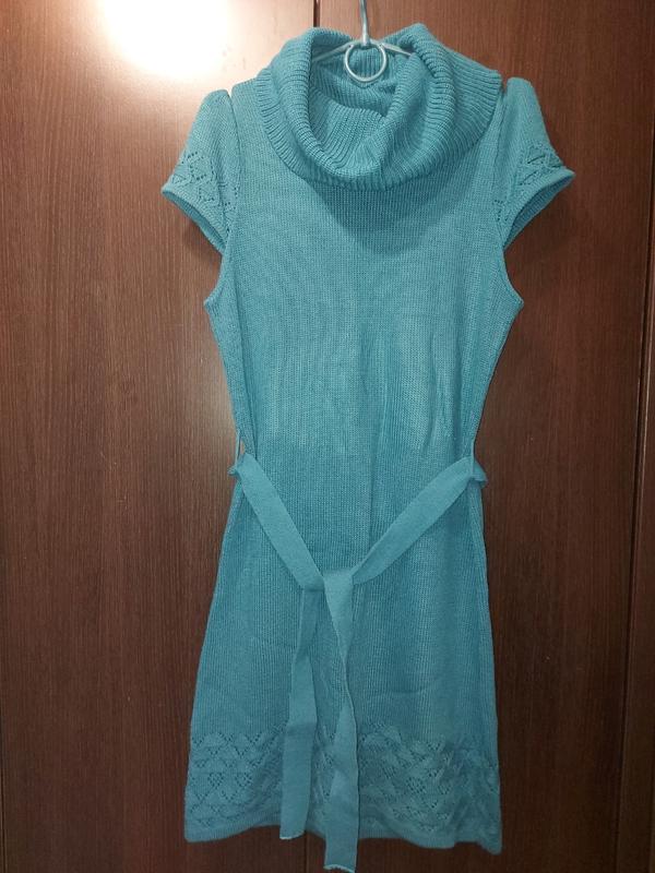 Разгружаю шкаф, платье в идеальном состоянии. Цвет бирюза, как на втором фото. Бирка с составом срезана, акрил. ПОГ 48 свободно тянется до 57 Длина от плеча 95
