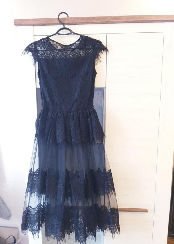 вечірнє міді плаття з фатином , є підюпник . Гарно тримає форму! дуже ніжний верх. розмір S по талія 37 см по грудей 45 см плечі 39 см трошки приспущені довжина 113 -115 см