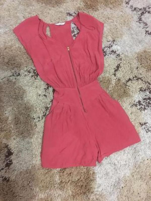 Комбинезон на молнии, сзади разделен на три части на спине и резинка, спереди молния и карманы по бокам