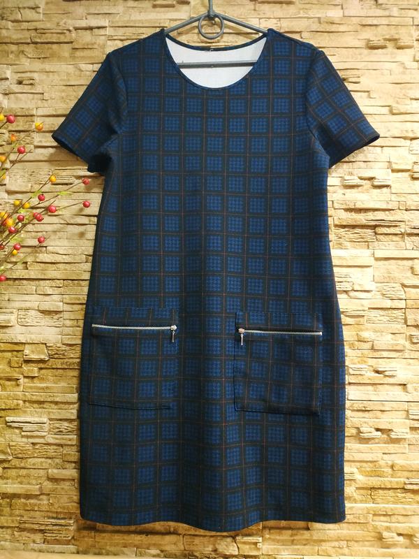Удобное и комфортное платье. Бирок нет. Ткань приятная, тянется, хорошо держит форму, не мнется. Костюмный трикотаж. Скорее всего полиэстер. Свободный фасон без лини талии. Без дефектов и изъянов. Идёт на Л-ХЛ ( на манекене одетого на размер Л) ПОГ-48- тянется до -58 ПОТ-47+ ПОБ-52+ длина-88 Плечи-40