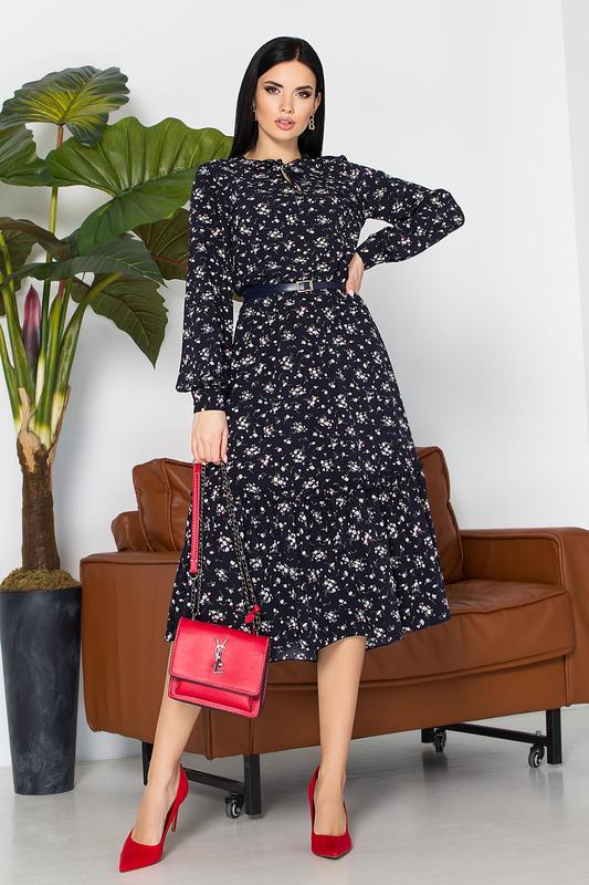 Колір: т.синій-м.квіти Склад: софт (100% поліестер) Розтяжність: ні Розмірна сітка моделі: S, M, L, XL Параметри: Довжина виробу: 115 см. Для всіх розмірів. Довжина рукава: S-L-61 см, XL-62 см. Зріст моделі на фото: 170 см. Параметри: 86-65-89. На моделі розміри XS.