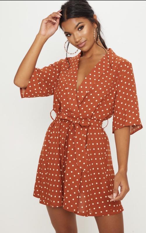 Платье, горох, Pretty Little Thing, #172, новое с бирками, oversize. Размер EU 40-44, ОГ 104 см., ОТ 120 см., ОБ 120 см. Длина общая 80 см.
