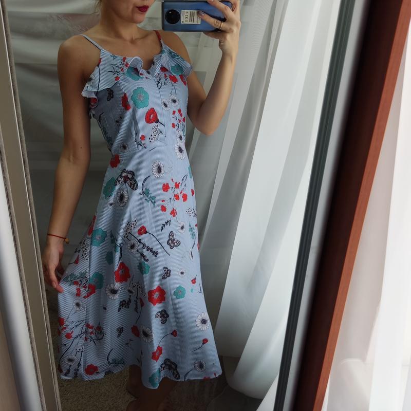 Брендова шифонова сукня з оборками Ззаду застібається на блискавку Розмір L-M довжина 115, ОГ 88-94, ОТ 68-76 см При покупці двох і більше речей знижка 10% Доставка Новою поштою або укрпоштою по повній або частковій передоплаті