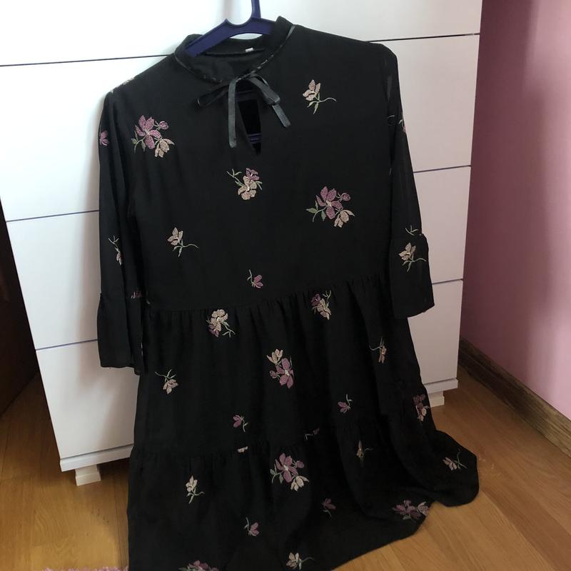 У квітковий принт,в середині чорна підкладка,не просвічується. З приємної тканини та вишукано дивиться на тілі. За потреби можу надіслати фото на тілі або додаткові фото.