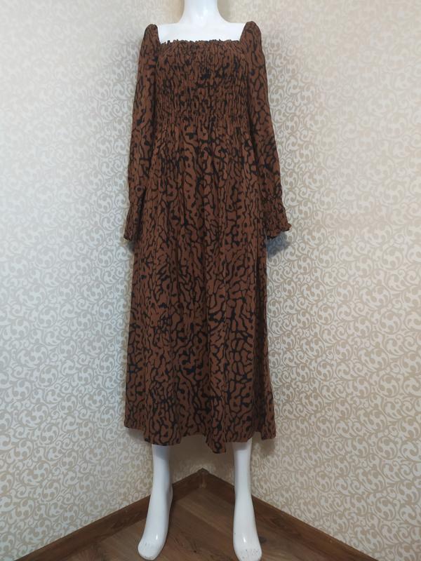 Гарне плаття, 100%віскоза Довжина міді, на низький зріст буде в підлогу Розмір S, підійде і на М Новий стан Заміри: Пог-37см, тягнеться до 53см Піт-38см+,тягнеться Рукав-63див Довжина-127см