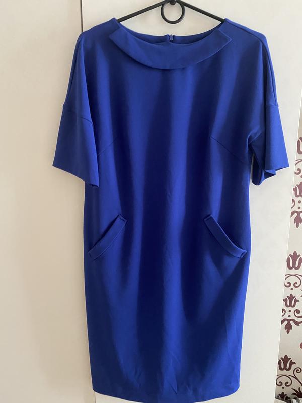 Цвет ультрамарин. Карманы не обманки) сзади на змейке. Размер М На фигуре сидит как прямое Длина по спине 86 От проймы до проймы полуобхват 49