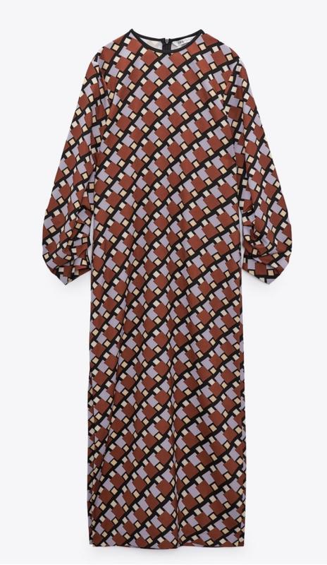 трендовое платье миди в принт от европейского бренда, смотрится супер. Ширина плеч 39 см., длина рукава от горловины 66 см., Длина платья 125 см. Полуобхват груди 46.5 см, полуобхват бедер 47 см,